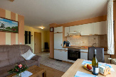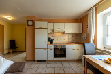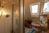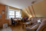 Unsere Ferienwohnung befindet sich im Obergeschoß unseres Hauses. Sie besitzt eine Wohnküche mit Eßtisch, ein Elternschlafzimmer mit Doppelbett, ein zweites Schlafzimmer mit zwei Einzelbetten und ein Bad mit Dusche und WC sowie Balkon. Auf Wunsch kann ein Kinderbett und Hochstuhl zugestellt werden. Weiter stehen Gartenmöbel und Grill zur Verfügung. Parkplatz sowie Unterstellmöglichkeiten für Fahrräder direkt am Haus. Für jede Wohnung stehen zwei Leihfahrräder (kostenlos) zur Verfügung.